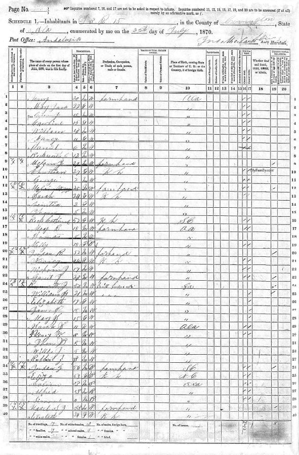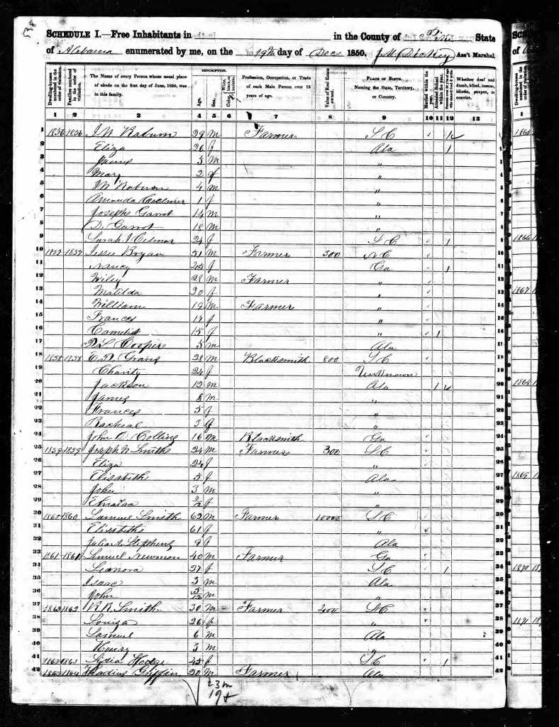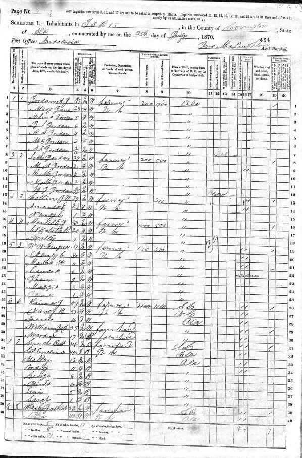 Ira was next found in Andalusia, Covington County, Alabama on the 1870 Census. By now, they had several more children. This Census states all children listed were born in Alabama.