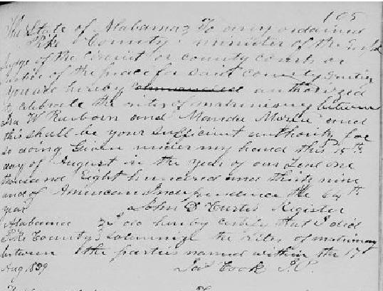 Documents Showing 1839 Marriage to Amanda Murfees in Pike, AL