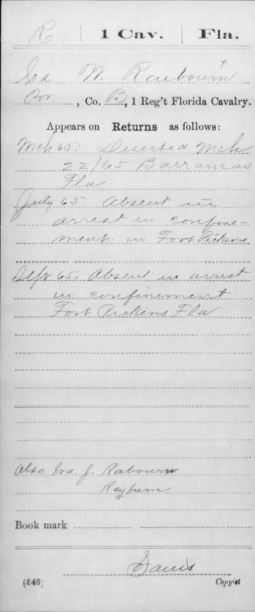 Record Showing Ira’s Arrest and Confinement At Ft. Pickens